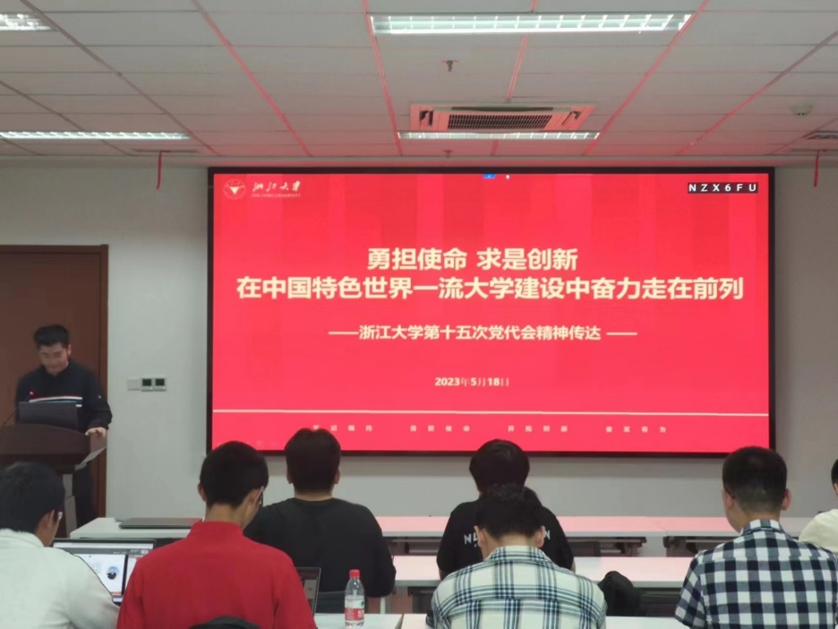 林思宸向本科生一支部全体成员传达了浙江大学第十五次党代会精神。2023年4月16日至17日,浙江大学第十五次党代会顺利召开,本次党代会的主题:以习近平新时代中国特色社会主义思想和习近平总书记对学校的重要指示精神为指导,牢记嘱托、勇担使命,开拓创新、奋发有为,扎根中国大地加快走世界一流大学前列,努力为中国式现代化全面推进中华民族伟大复兴作出积极贡献!