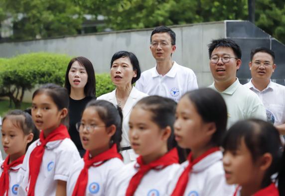 “大不自多,海纳江河……”当熟悉的校歌在浙江大学西迁宜山纪念广场响起,宜州区中心小学的二十余名学生在实践团成员的带领下唱响了85年前在这片土地上诞生的浙大校歌《大不自多》。朱书记对小朋友们的倾情演唱表示赞美和感谢,她鼓励小朋友们以浙江大学为目标,好好学习、天天向上。