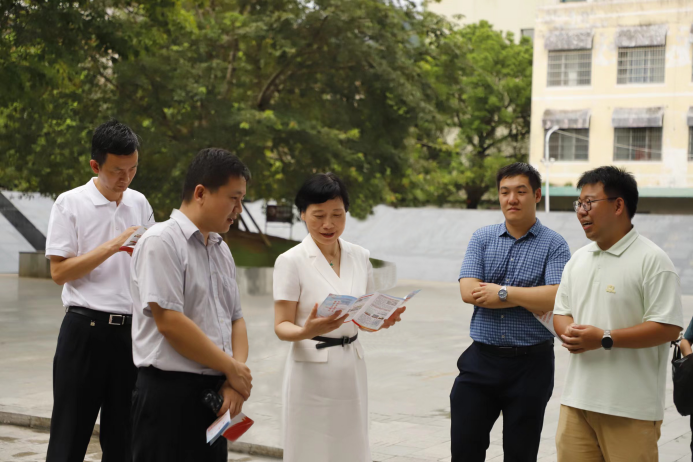 2023年7月30日下午,浙江大学党委副书记朱慧老师一行莅临广西壮族自治区河池市宜州区的浙江大学西迁宜山纪念广场进行参观调研,在威廉希尔WilliamHill官方网站赴广西宜州屏南乡合寨小学支教暑期社会实践团带队老师包晨琛的陪同下,参观了实践团在浙江大学西迁宜山纪念广场举办的科普展览,并慰问了实践团成员。