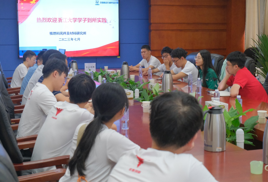 7月25日上午,在浙江大学材料学院办公室副主任叶启阔老师的带领下,材料学院“青年学子与大国之材”暑期社会实践团前往中国核动力设计研究院第四研究所(简称“核动力院”)参观核能科技馆并参加座谈会,核动力院综合办主任罗强、浙江大学校友汪新杰共同本次活动。