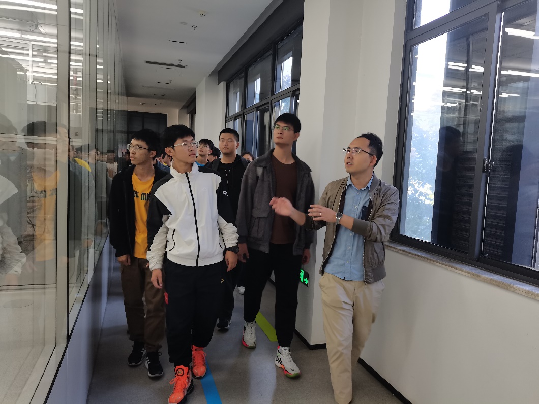 随后,未来科学研究院研究员张漩老师带领师生一行参观了储能研究室。在张老师深入浅出的讲解中,同学们了解到能源材料化学的研究内容和新能源器件的制备过程,被普及多种电池类型知识,包括锂空气电池、锂离子电池、钠离子电池、燃料电池等电池体系,同学们听讲后收获颇丰,意犹未尽。