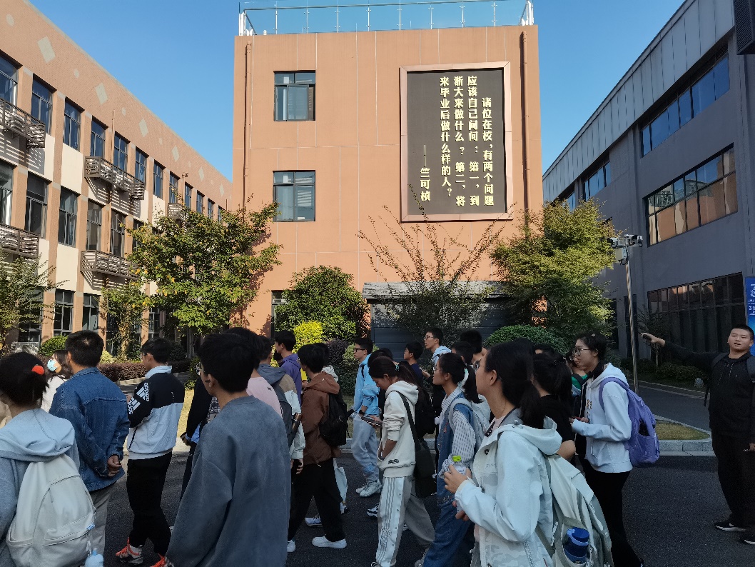 为增进2023级新生对材料科学与工程专业的了解,培养专业认同感,提高学习兴趣,激发学习热情,规划未来的材料专业学习方向,2023年10月21日下午,在材料科学与工程学院辅导员包晨琛老师的带领下,41名2023级材化高大类新生赴浙江大学杭州国际科创中心信息港园区开展参观学习活动。