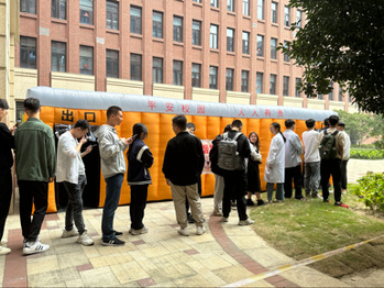 在消防演练阶段,同学们在老师们的引导下学习了灭火器的使用,初步掌握了四步快速使用灭火器的方法,开展了明火灭火演练、模拟灭火演练等体验活动,加强了同学们对灭火知识的学习与了解。此外,同学们有序地进入模拟烟雾逃生体验馆,对在火场中寻找出口逃生的场景进行了模拟演练,针对可能在火灾中遇到的困难和危险学习自我保护的基本要领。