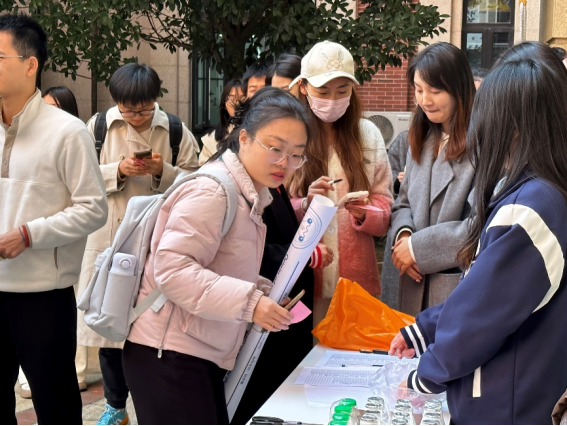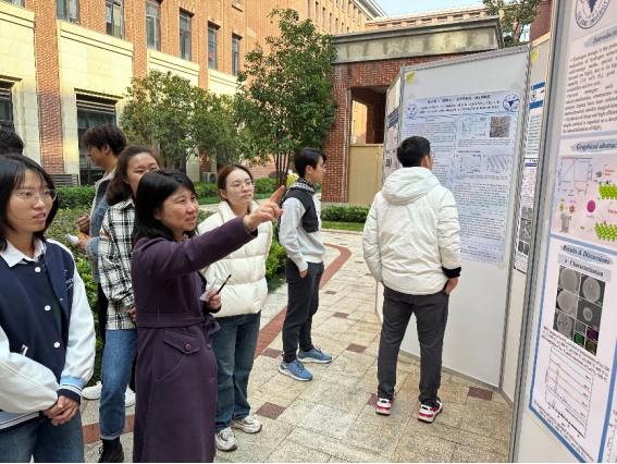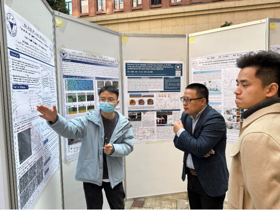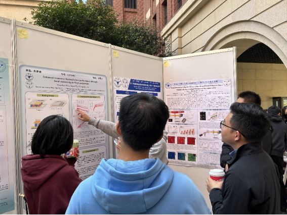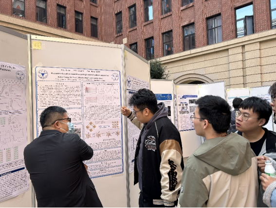 随后,活动进入自由讨论与展示环节。寒风凌冽吹不散老师和同学们的热情。参展的研究生们向前来观摩的师生详细地介绍,并就自己研究领域的问题进行探讨,现场讨论声此起彼伏,交流热烈。