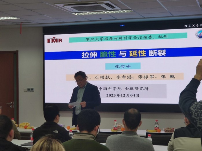 2023年12月4日下午14:00-15:30,由材料科学与工程学院主办、材料科学与工程学院研博会及材料科学与工程学院青年教师联谊会承办的新一期求是材料科学论坛报告会在紫金港校区和同苑9幢材1-210会议室成功召开。本次学术报告会邀请了中国科学院金属研究所张哲峰研究员作主题为“延性与脆性拉伸断裂”的专题报告。众多师生来到现场聆听报告,报告由材料学院院长朱铁军老师主持。