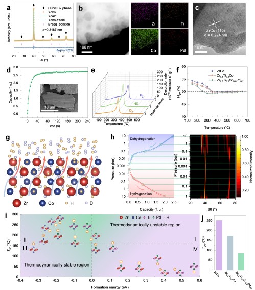图4 Ti-Pd共掺ZrCo基新型合金的微观结构和性能表征以及氢同位素效应机理解析