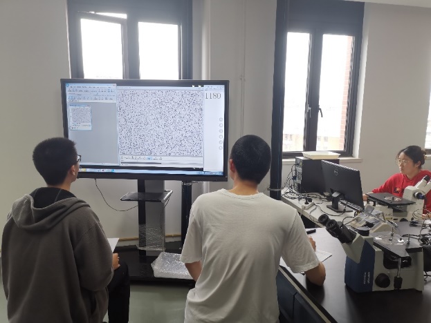 参赛选手按十人一组展开角逐。选手们手持国赛标准试样,在30分钟内运用训练积累的经验和技术熟练地完成打磨、抛光、腐蚀、显微观察并交样等待统一评分。