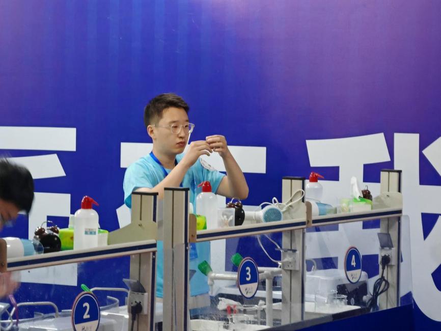 在第二天的正式比赛中,选手们沉着冷静,临危不乱,均顺利完成比赛样品的制备。每位选手比赛结束之后,都将比赛中遇到的问题和心得与其他选手分享,并进行归纳总结,以免再次犯错,带队老师也将第一手消息及时传达给各位选手。