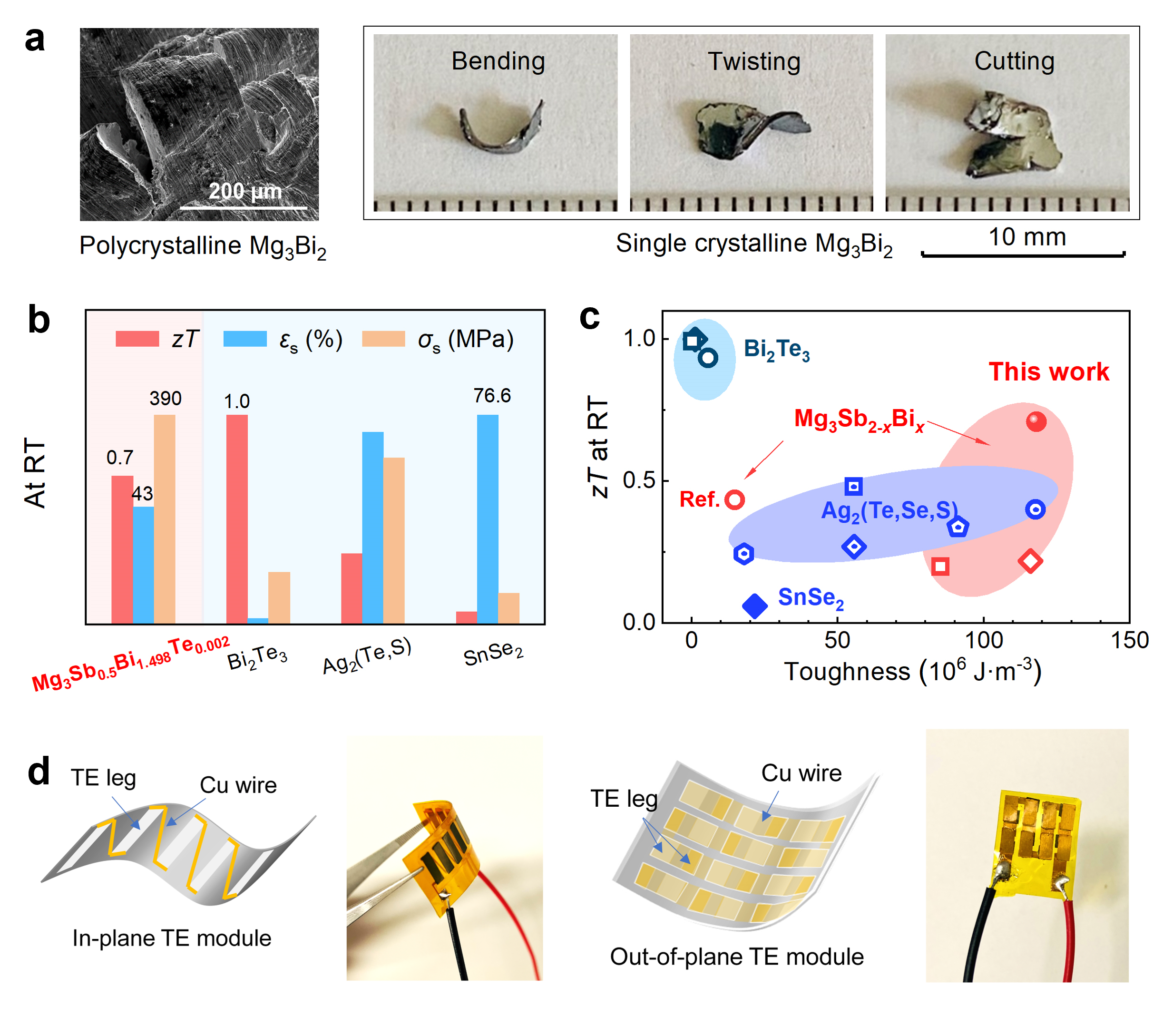 兼具高塑性与高热电性能的Mg3Sb2-xBix及其原型柔性热电器件