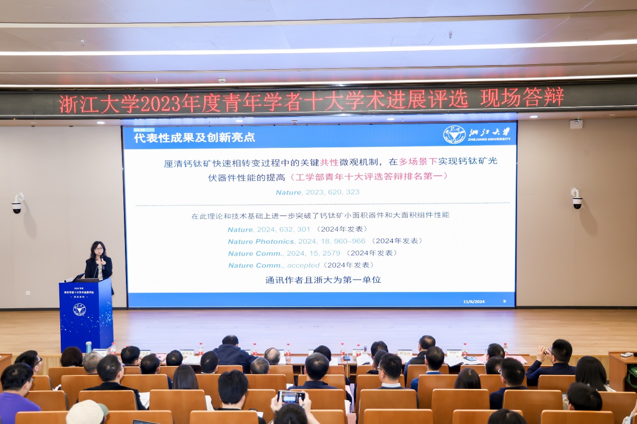 为深入贯彻落实党中央关于“教育、科技、人才是全面建设社会主义现代化国家的基础性、战略性支撑”的精神,进一步加强浙江大学高水平学术成果的凝练与传播,搭建优秀学者交流互促的平台,引领正确的学术价值观,助力“双一流”建设,同时为优秀学科建设拔尖造峰夯实人才根基,11月6日下午,校学术委员会组织现场答辩,评选出了浙江大学2023年度十大学术进展和青年学者十大学术进展。我院田鹤教授的学术成果“新型高密度存储铁电畴壁器件”成功入选“十大学术进展”,薛晶晶研究员的学术成果“光伏钙钛矿的取向成核机制”成功入选“青年学者十大学术进展”!