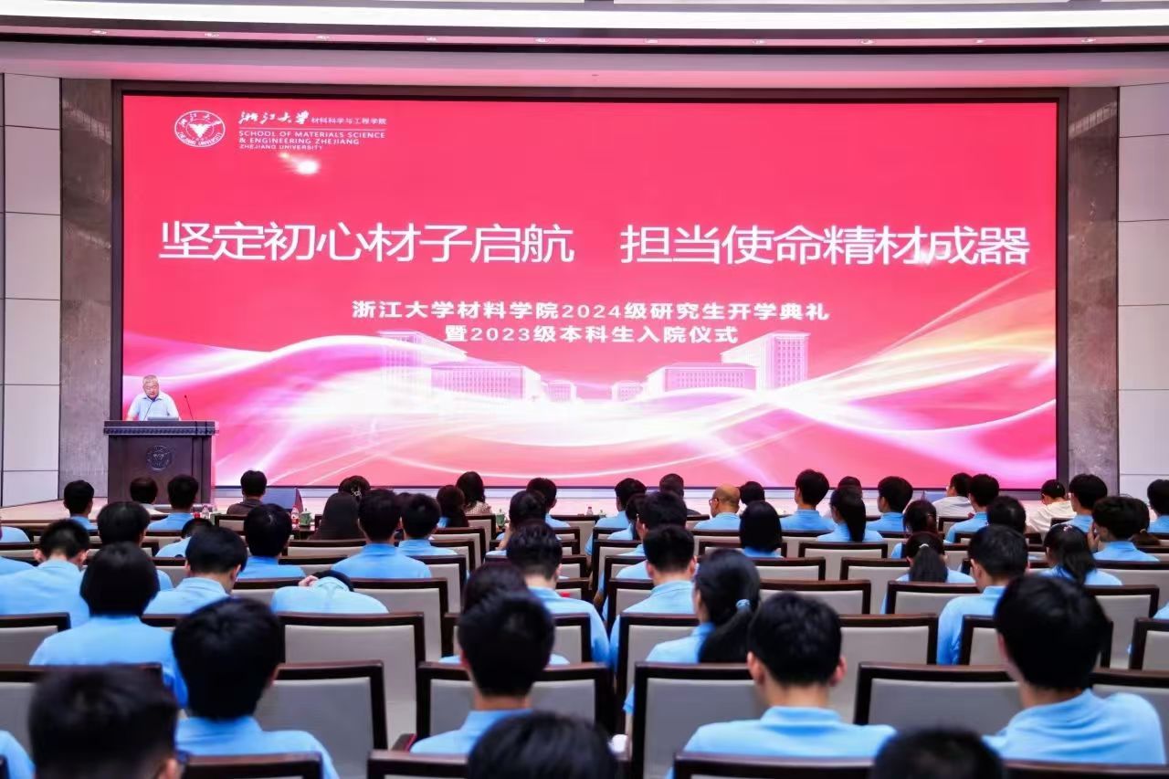 9月20日晚,浙江大学材料学院2024级研究生新生开学典礼暨2023级本科生入院仪式在紫金港校区主图书馆报告厅隆重举行。此次盛会标志着新一届材料学院学子的学术旅程正式启航。典礼上,学院领导、教师代表及学生代表们分别致辞,热烈欢迎新生的加入,并寄语他们在未来的学习和研究中勇攀科学高峰。现场气氛庄重而热烈,新生们也在这一刻感受到了学院的凝聚力和学术的庄重使命。