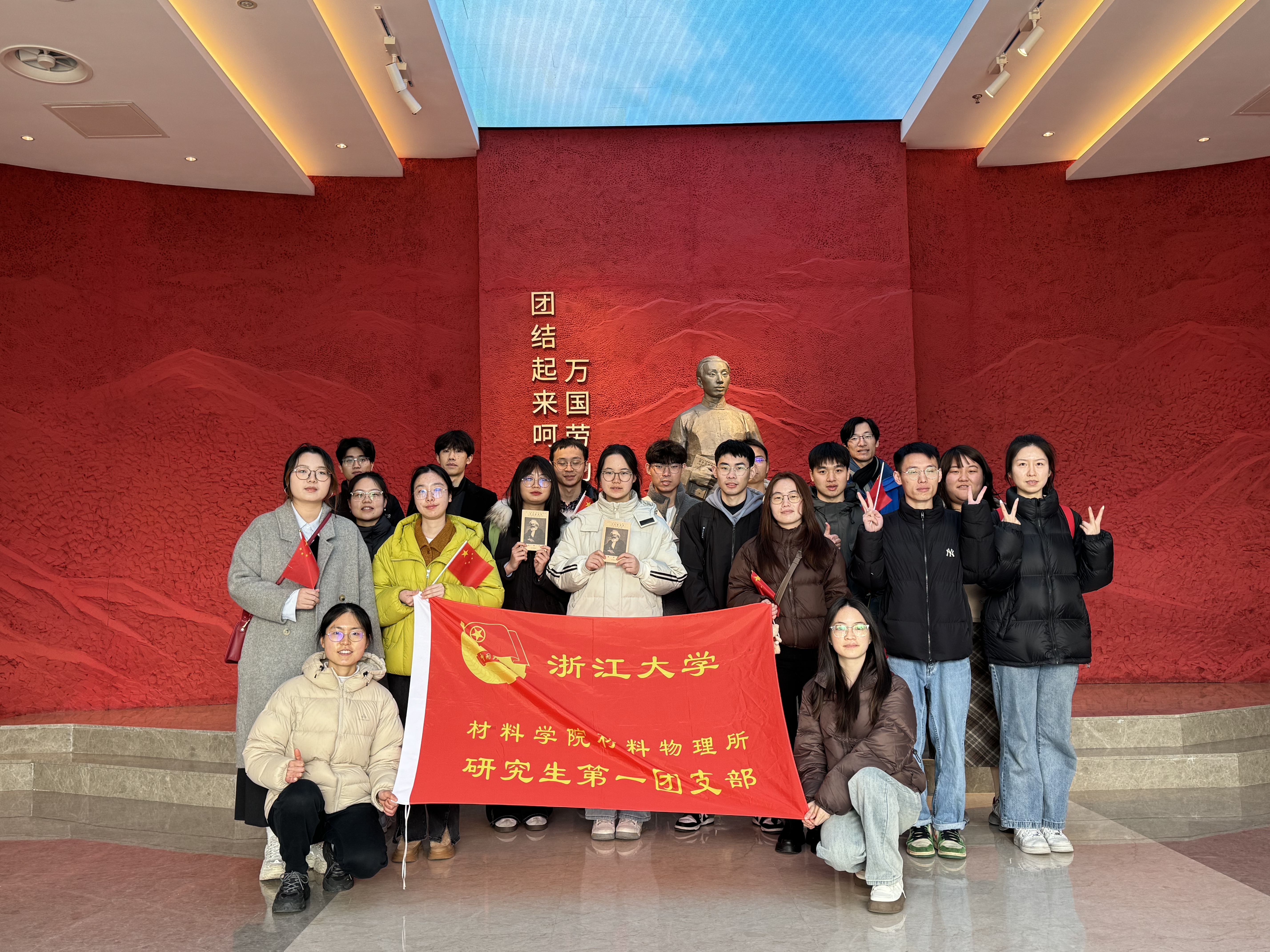 迎着初升的太阳,两支队伍分别从紫金港和玉泉校区出发。材物一党支部支书王茜和无机一党支部支书包齐栋分别带队,同志们怀揣着崇敬与热忱,踏上前往陈望道故居的红色之旅。