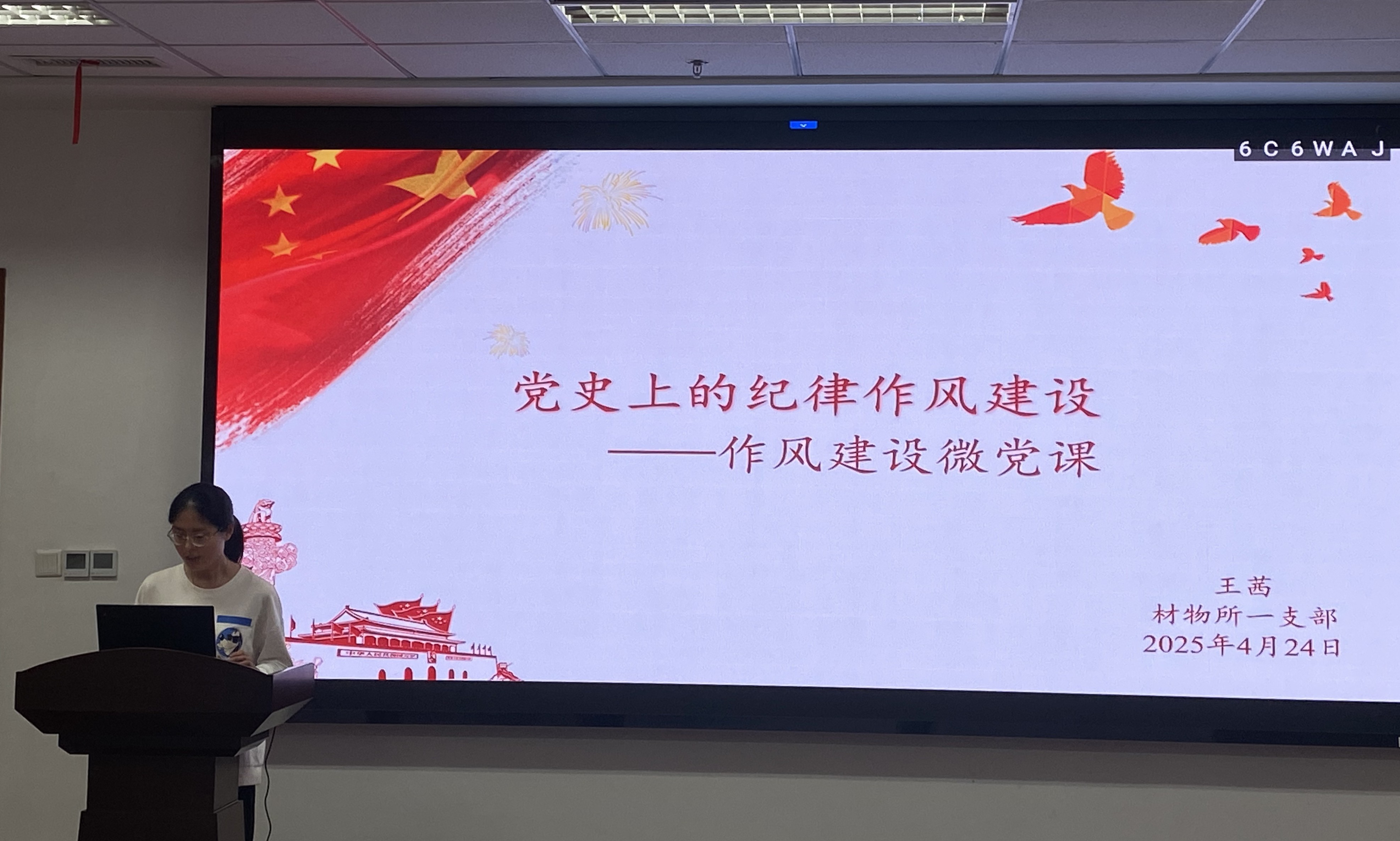 2025年4月24日晚,材料物理所研究生第一党支部在和同苑9幢党员之家开展了主题党日。活动采取党员大会的形式,以“以底气破局,以纪律筑基,以制度固本”为主题,组织大家集中学习讨论,内容包括微党课、中央八项规定精神学习教育以及支部红色书柜建设、请假制度讨论。会议应到党员28人,实到22人,请假6人,4名积极分子踊跃参加,由支书王茜主持会议。