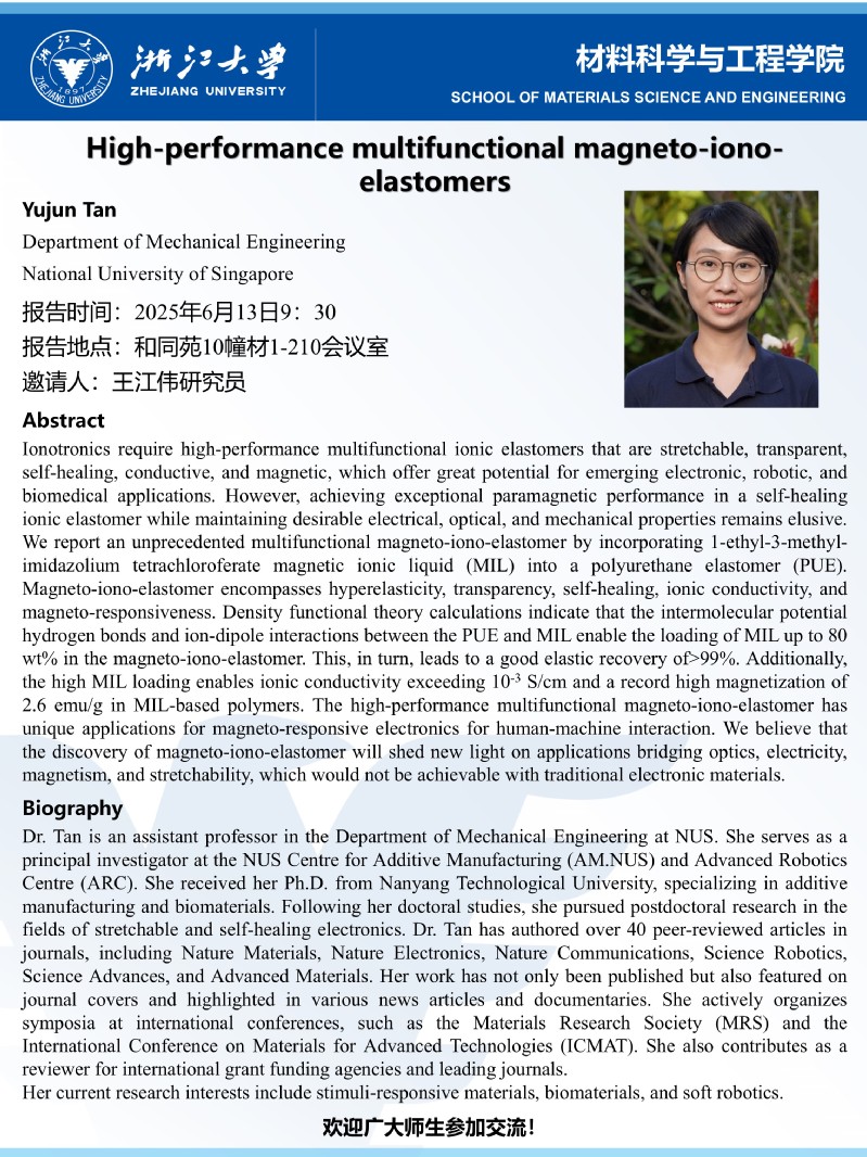 关于新加坡国立大学Yujun Tan博士学术报告的通知