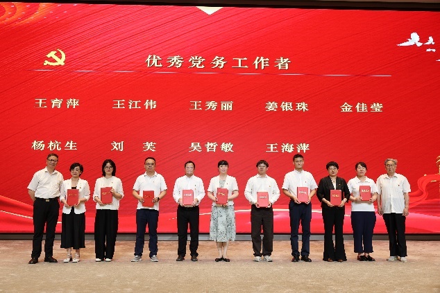 大会现场,学院对过去在党建工作中涌现的“两优一先”获得者进行隆重表彰。经严格评选,本次共产生16个先进党支部、66名优秀共产党员、20名优秀党务工作者。颁奖环节中,学院党委委员李翔老师宣读名单,获奖党员代表依次上台,学院老领导、党政班子成员及党委委员郑重为获奖者颁发荣誉证书,并合影留念。热烈庄重的氛围中,荣誉既是对先进集体和个人的高度肯定,也激励着全体党员以他们为榜样,对标争先、勇担使命,将榜样力量转化为实际行动,为推动学院建设与发展贡献更大力量。