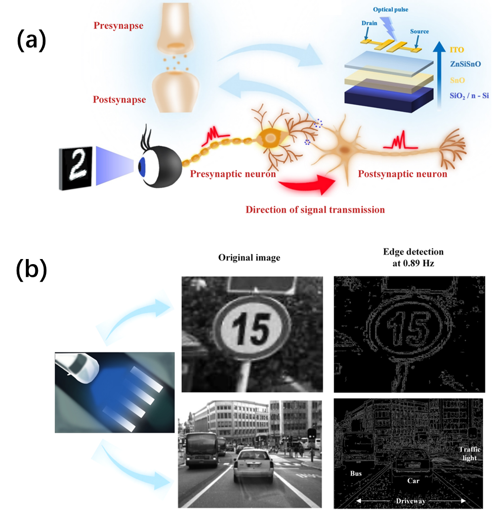 (b)全光控神经突触器件在自动驾驶图像识别中的应用