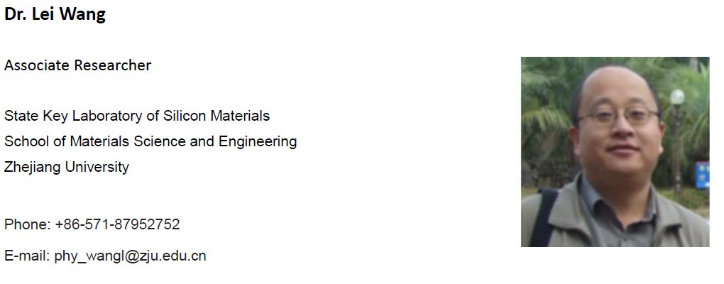 01/2004-present Associate Researcher, State Key Laboratory of Silicon Materials, Zhejiang University
