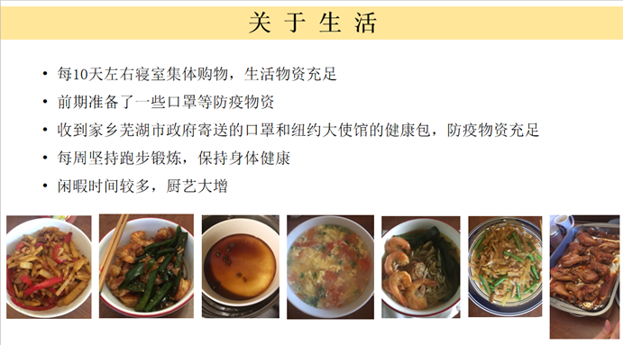 The third part of the symposium was sharing the current situation of the students. Every student overseas has carefully prepared pictures and texts, sharing the basic situation of the area where they study abroad, the corresponding policies of the school, and the living arrangements after the school is closed. Many students have received the health and epidemic love package, thanking all parties including the government and school for their care for overseas students, and lamenting the strength and warmth of the motherland. At the same time, he expressed the need to arrange this period in a reasonable and scientific manner to prevent the epidemic from delaying scientific research, and to achieve success in learning and return safely. The following are some excerpts of shared content: