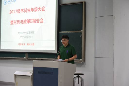 On September 28, 2020, 18:30, the Undergraduate Career Mobilization Meeting was held in Classroom 107, Cao Guangbiao II, Yuquan Campus. Mr. Zhang Shiliang, Deputy Secretary of the Party Committee of College of Materials, Zhejiang University, Mr. Chen Qiang, Party and Government Office of College of Chemical Engineering and former counselor of College of Materials, attended the conference. The meeting was hosted by Zhang Rui’an.