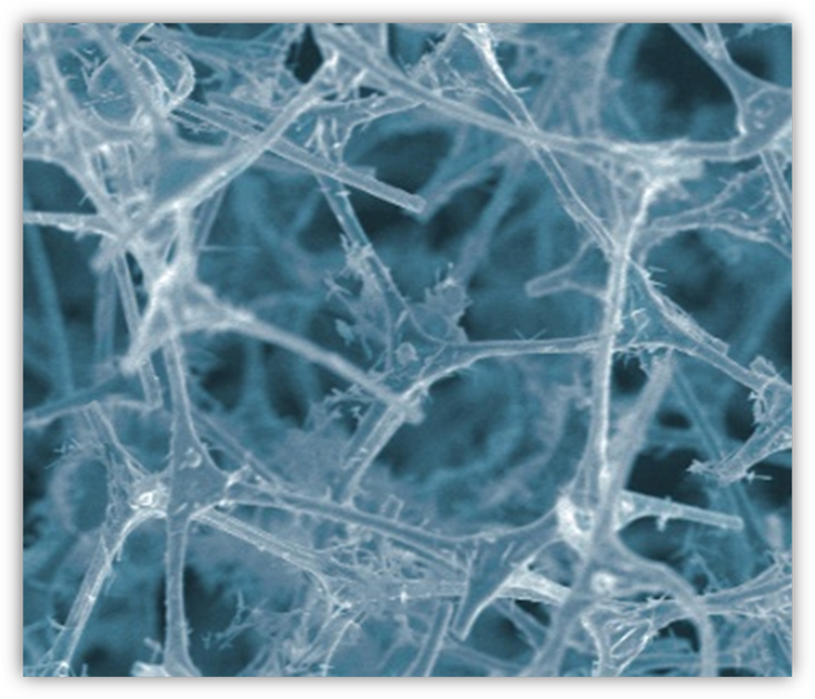 The mesh material appears brighter at the edges, like the way light shines on ice, and the three-dimensional mesh structure gives the image layers, like looking down into an ice cave and seeing intricate twig-shaped ice ballast.