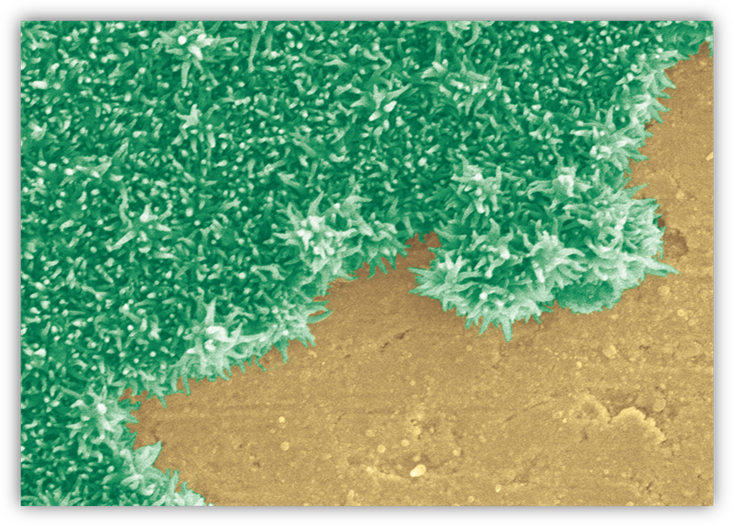 The PDMS substrate under the microscope is like waves rising and falling, one right after the other. The ship rides on the wind and breaks the waves, leaving a trail of courageous progress. In the pursuit of truth on the road of scientific research, we may meet some troubles, but we will go forward in spite of the hardships and will eventually reach the ideal shore.